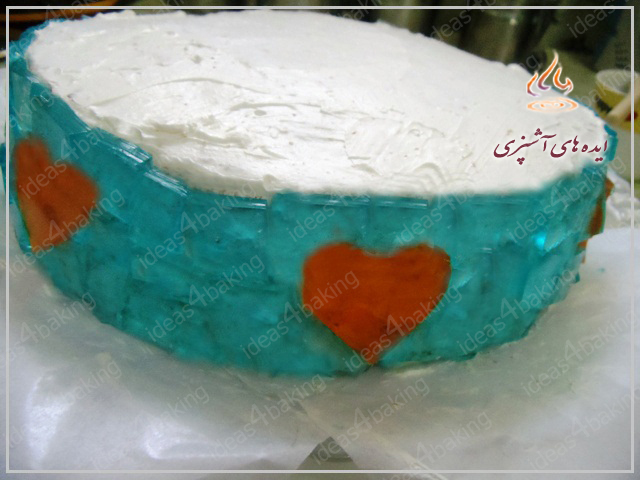 نکته: یادتون باشه اگه زیر کیک کاغذ روغنی گذاشتین،قبل اینکه ژله رو بچینید حتما خارجش کنید و گرنه مث من تو درد سر می افتین و ژله های پایین کیک با کاغذ روغنی جدا میشن از کیک!!