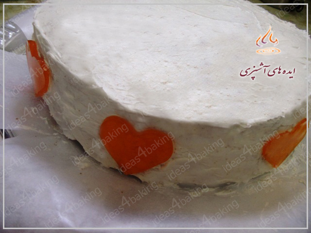 * و بعد اطراف قسمت بالای کیک رو با خامه شکوفه زدم