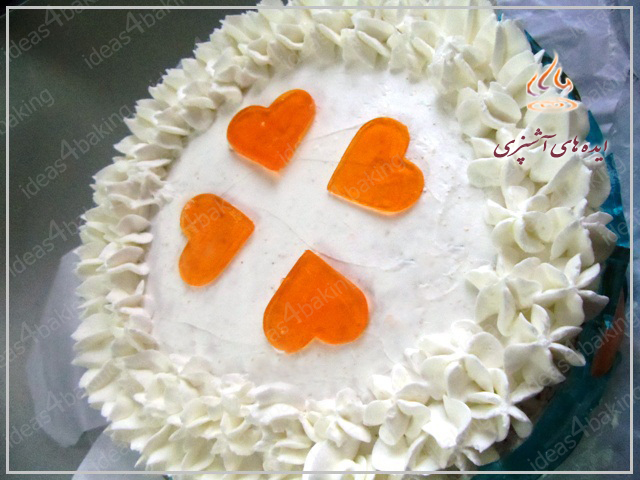 نکته: خامه به اندازه کافی به کیک بکشید وگرنه هم تو چیدن ژله ها به مشکل بر میخورید هم اینکه از زیر ژله منظره نامرتبی پیدا میکنه کیک و دیده میشه چاله چوله هاش!